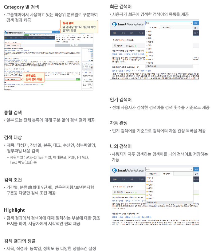 기업 내부에 축적된 다양한 정보를 보다 쉽고 빠르게 접근할 수 있도록 효과적으로 분류, 색인하여 정확한 검색 서비스를 제공