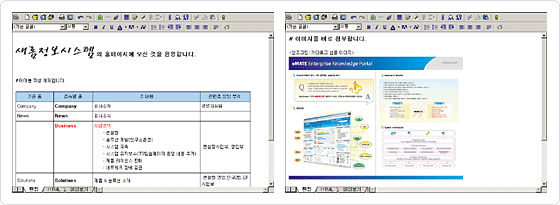 eMATE MIME Extension은 Web Editor Control을 이용한 문서 편집 시 Image는 물론 다양한 OLE Object를 이용한 문서 작성을 가능하게 하며 Notes Client, 외부 Internet Mail과의 완벽한 데이터 호환성을 제공합니다. 이제 Web Editor를 이용하면서도 C/S 수준의 자료를 공유할 수 있습니다.
